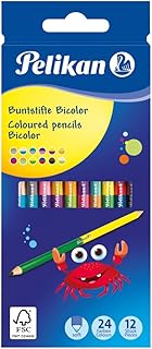 Pelikan 700146 12 Bicolor-Buntstifte, 24 Farben, rund, jeder Buntstift mit 2 verschiedenfarbigen Enden, farbig lackiert in Minenfarbe