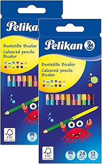 Pelikan 700146 12 Bicolor-Buntstifte, 24 Farben, rund, jeder Buntstift mit 2 verschiedenfarbigen Enden, farbig lackiert in Minenfarbe (Sortiert, 2 Stück)