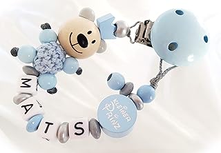 Baby Schnullerkette Teddy für Jungen mit Wunschnamen - Kinder - Geschenk zur Geburt, Taufe - Länge: max. 22cm