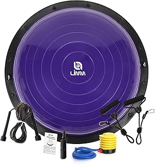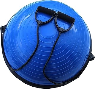 Limm Half Ball Balance Trainer - Halb Yoga Ball mit Widerstandsbändern Griff und Springseil - Pilates Übung Balance Ball für Kniebeugen, Steps Workout, Balance Training, Push Ups, Core Training usw.
