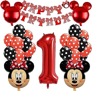 Minnie Mouse Party Luftballons HANEL-Themed Geburtstag Dekorationen, Mickey 1st Birthday rot schwarz Minnie Luftballons, Happy Birthday Banner, Folienballons für Minnie Mouse Themenparty