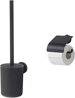 Tiger Urban Toilettenbürste, Farbe: Schwarz, WC-Bürstengarnitur zur Wandbefestigung & Urban Toilettenpapierhalter mit Deckel, schwenkbar, Farbe: Schwarz