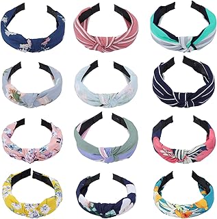 TsunNee Boho Knoten-Stirnband, florales Design, Knoten-Turban-Haarband, breites Yoga-Kopfband für Frauen und Mädchen, 12 Farben, 12 Stück