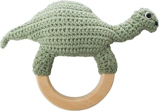Sebra - Häkel-Rässel - Dino auf Holzring - Baumwolle - 16 x 11 cm