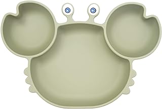 Baby Teller Schüssel Mini Silikon Platte für Baby Kleinkinder und Kinder Tragbar Teller Baby Rutschfest Babyteller Saugen Abwaschbar für Spülmaschine, Mikrowelle (Krabben-Tea Green)