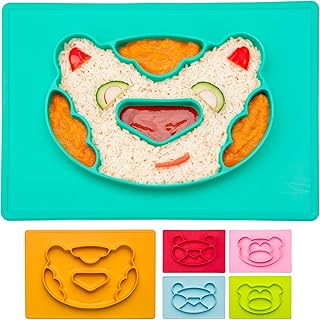 Baby Teller, Kinderteller Silikon Teller für Baby Kinder Tischset Rutschfest Babyteller mit Saugnapf und Deckel Platzdeckchen BPA-frei Babygeschirr für die Meisten Hochstuhlschalen