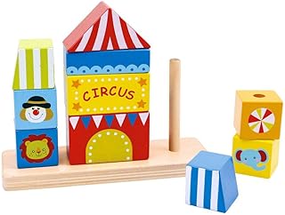 Tooky Toy Steckspiel aus Holz-Zirkus Turm zum Lernen und zur Motorik Schulung Ihres Kindes-mit 5 verschiedenen Steck-Formen ab 3 Jahren ca. 15 x 18,5 x 6 cm