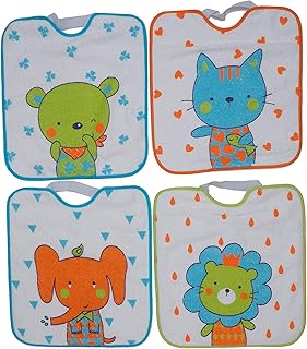 Titin 4 Pack wasserdichte frottee Babylätzchen23x28 cm | Lätzchen mit elastischem Verschluss für Babys von 6 bis 18 Monaten