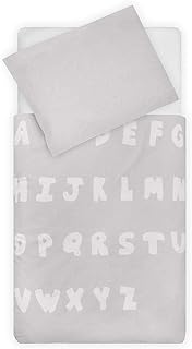 Jollein - Bettwäsche"ABC Soft Grey" 120x150cm - Kinderbettwäsche aus 100% Baumwolle - Grauer Bettbezug für Babys & Kinder mit ABC-Muster