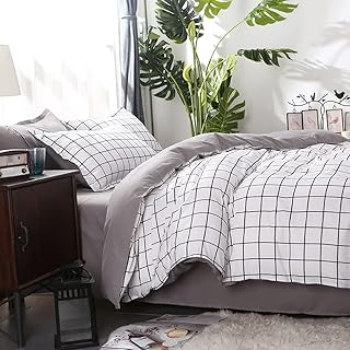Michorinee Bettwäsche Kariert 135x200 Schwarz Weiß Microfaser Wendebettwäsche Grau Weiß Karomuster Bettbezug mit Reißverschluss 2 Teilig - 135 x 200 cm + 80 x 80 cm