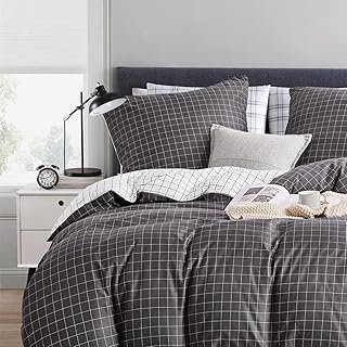 Gezu Bettwäsche Kariert 155x220cm Grau Weiß Schwarz Weiß Karo Wendebettwäsche Set Microfaser Bettbezug und 2 Kissenbezüge 80x80cm mit Reißverschluss