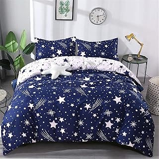 WONGS BEDDING Bettwäsche 200x200 cm Bettbezug Set Wendebettwäsche Angenehme Mikrofaser Sterne Bettbezüge 1 Bettbezug 200 x 200 cm mit Reißverschluss + 2 Kissenbezüge 48 x 75 cm(Blau&Weiß)