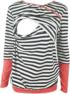 Damen Rundhalsausschnitt Top Schwangere Frauen Stillen Rundhalsausschnitt T-Shirt Oberteile Streifen