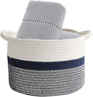 Znvmi Baumwollseil Aufbewahrungsbox mit Griffen 23.5 x 14.5 x 8.3 cm Haushalt Lagerplatz Korb Mini Aufbewahrungskorb für Kinderzimmer Badezimmer - Grau