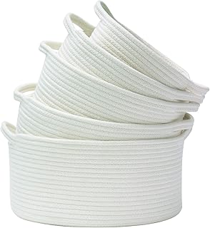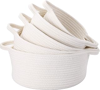 Suwimut Set mit 5 Aufbewahrungskörben, verschiedene Größen, Baumwollseil, gewebter Korb, faltbar, kleiner weißer Korb, Organizer für Wäsche, Kinderzimmer, Kinderspielzeug, neutrale Farbe