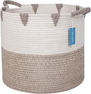 GooBloo Großer Baumwollseil Gewebtem Korb - 17 x 17 Hoher dekorativer Lagerkorb für Wohnzimmer, Spielzeug oder Decken - Weidenkörbe mit Griffen, Deckenkorb- Korb