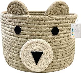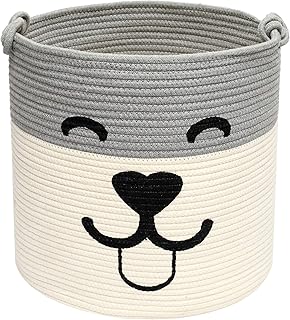 Bär-Korb, Baumwollseil, gewebter Wäschekorb, Spielzeug-Aufbewahrungskorb für Kinder, Kleidung im Schlafzimmer, Babyzimmer und Wohnzimmer, 25,4 cm (H) x 30,5 cm (T)
