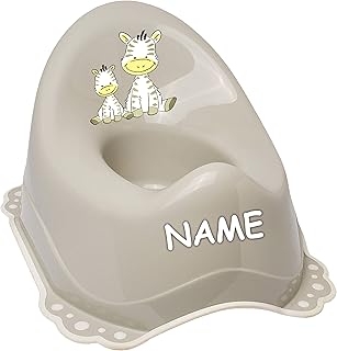 alles-meine.de GmbH Anti RUTSCH - Töpfchen / Nachttopf / Babytopf - hell grau _ Tiere - Zebra _ inkl. Name - Bieco - mit großer Lehne + Spritzschutz - rutschfest antirutsch Funkt..