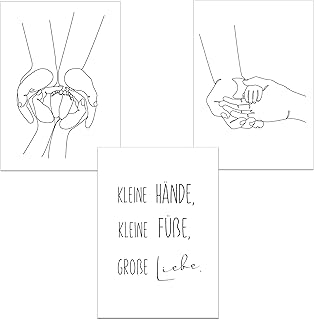 ChicResult Line Art Wandbilder Familienliebe 3er Set Bilder - Moderne Deko für Babyzimmer, Kinderzimmer Dekoration - Wandbild mit Spruch, Poster Set (DIN A4 ohne Bilderrahmen)
