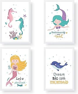 Papierdrachen 4 Kinder Premium Poster DIN A4 | Wandbilder für Kinderzimmer - Meerjungfrau - hochwertige Kunstdrucke | Dekoration | Wandbild Set