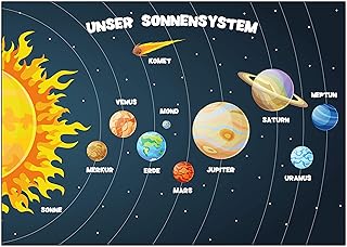 Unser Sonnensystem Poster KInderzimmer Weltall Austronaut Weltraum Lernposter Sonne Rakete Kinderposter Kinderzimmer Deko Print Wandbild Plakat Lernposter Erde Mars Merkur Jungs Mädchen