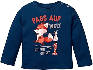 Baby Langarm-Shirt 1. Geburtstag Pass auf Welt ich Bin jetzt 1 2 Fuchs Geburtstagsshirt Bio-Baumwolle
