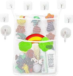 “N/A” Bad Spielzeug Organizer Badewanne Spielzeug Aufbewahrungstasche Spielzeug Mesh Netz mit 6Selbstklebend Haken Spielzeug Mesh Beutel Badespielzeug Aufbewahrung mit Mehreren Taschen