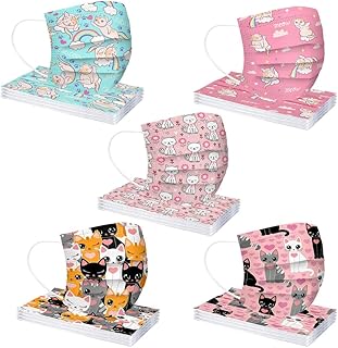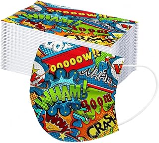 50 Stück Mundschutz Kinder Einweg 3-lagig mit Motiv Bunt Mund-Nasen-Schutz Cartoon Druck Atmungsaktiv Mund-Tuch Bandana Halstuch Schals für Mädchen Jungen