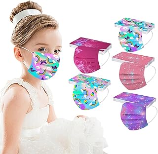 HUALONG 50 Stück Mundschutz Kinder Einweg 3-lagig mit Motiv Bunt Mund Nasenschutz Druck Tücher Staubdicht Atmungsaktiv Mund-Tuch Bandana Halstuch Schals für Mädchen Jungen